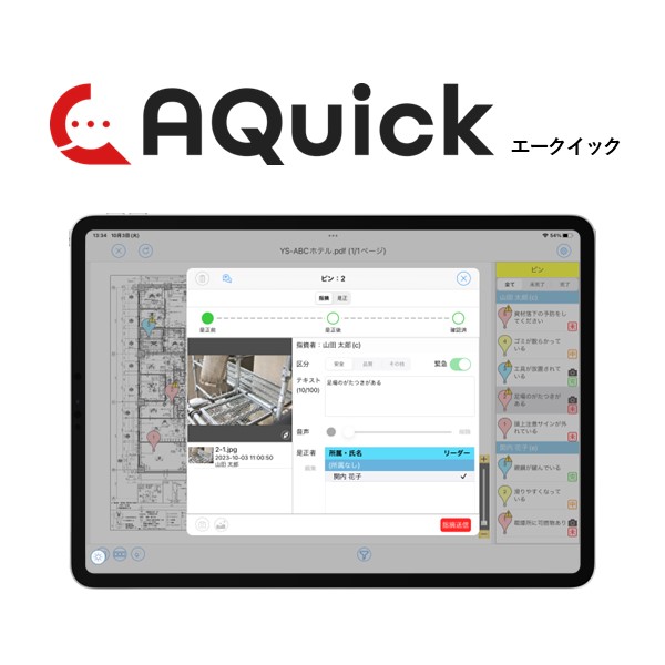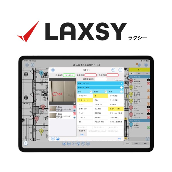- 図面上の位置や写真で、指摘内容の詳細が正確に伝わる