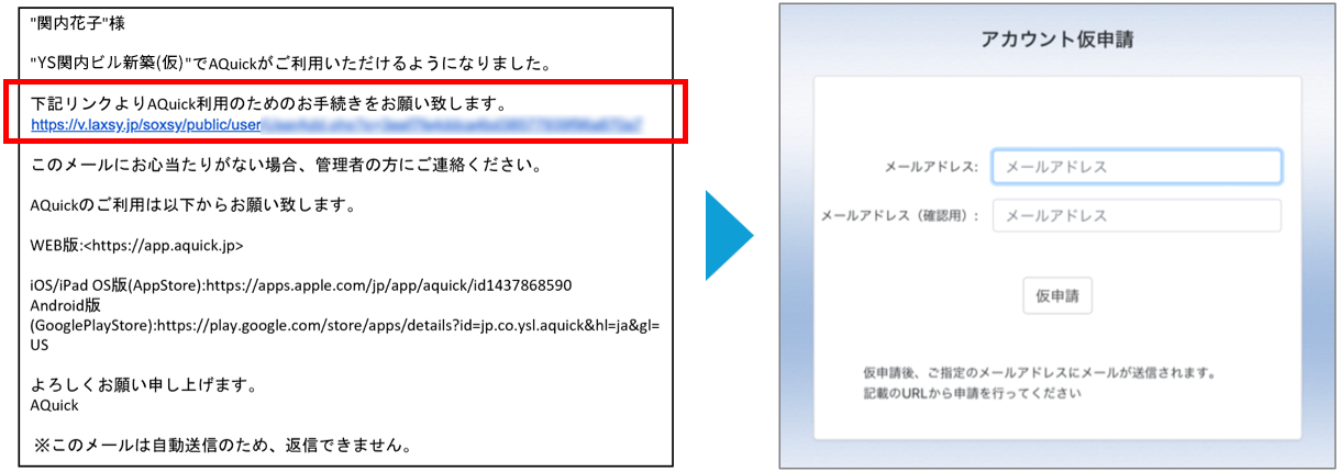 「【AQuick】新規利用登録のご案内」メールに新規利用の