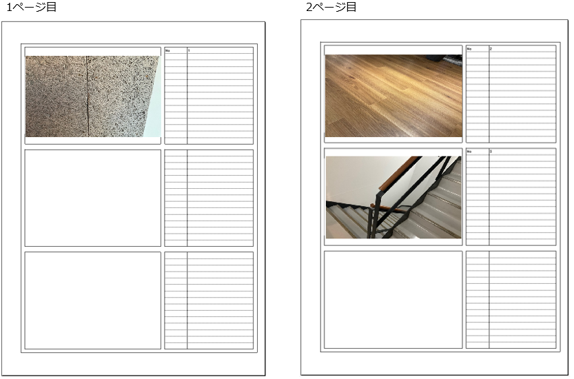 帳票出力時に選択した写真に「No」の項目が表示されます。