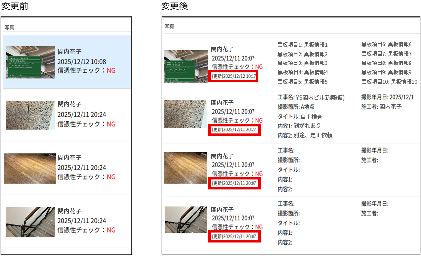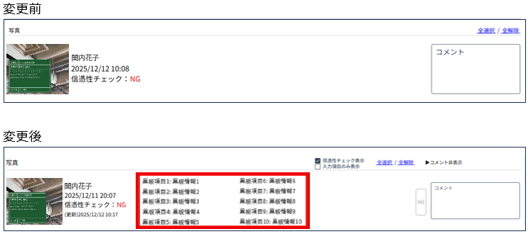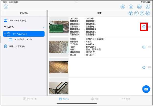 3. 黒板情報、写真属性などの写真情報を一覧に表示