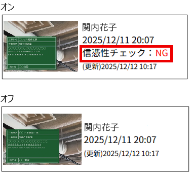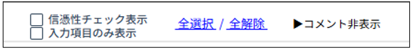 写真一覧の表示する情報として、「信頼性チェック」と「入力項目のみ表示」の