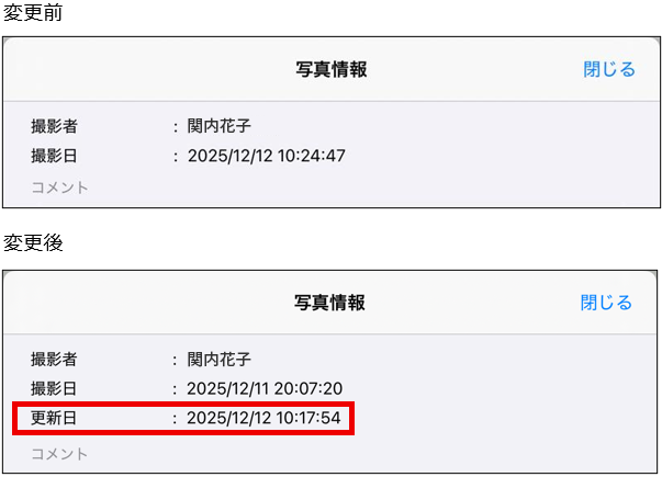 ※上記の処理を実施していない場合、撮影日と更新日は一致します。