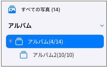 「該当アルバムの枚数 / 配下アルバムの総数」が表示されました。