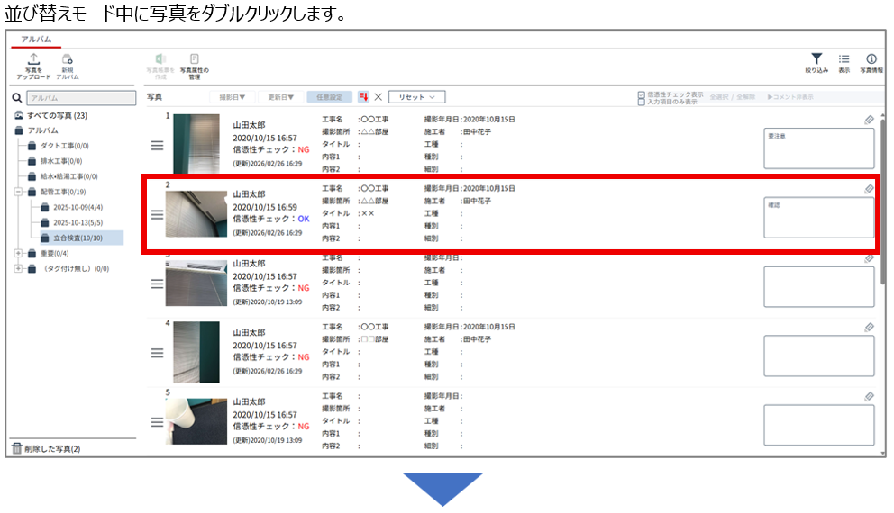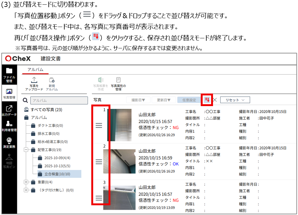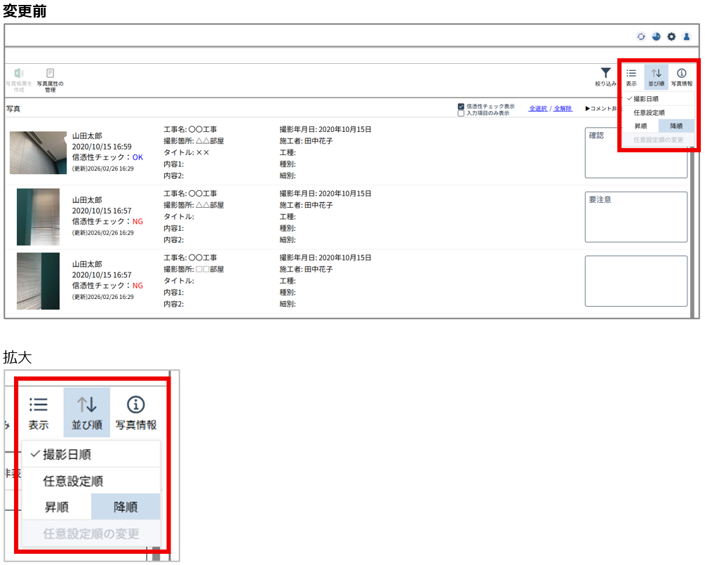 1. 写真一覧の並び順変更方法を改善