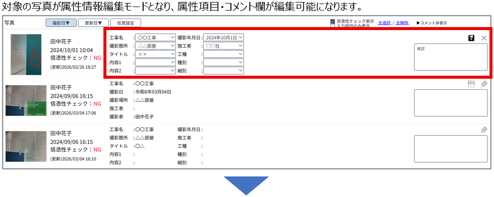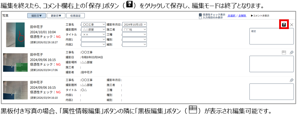 4. 写真一覧で直接写真の属性情報・コメントが編集できる機能を追加