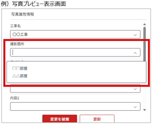 写真の属性情報について、項目毎に入力履歴が保持されるようになりました。