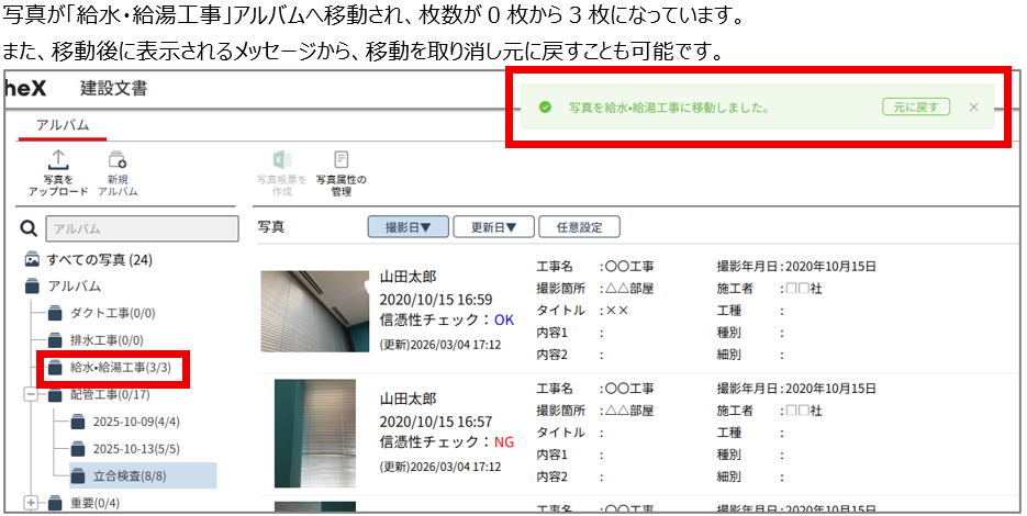 別のアルバムへ移動することが可能になりました。