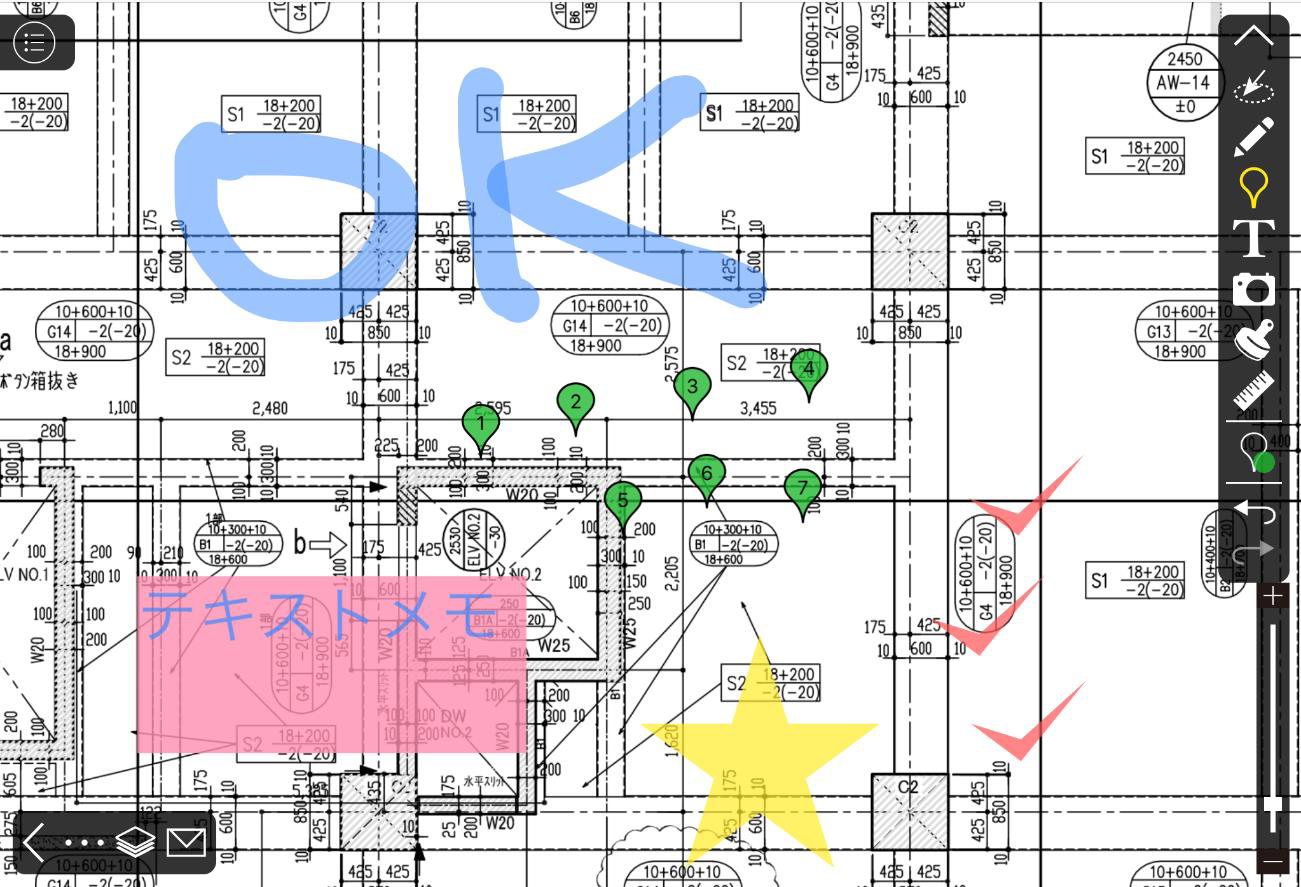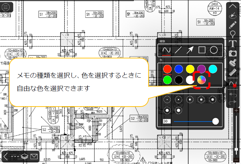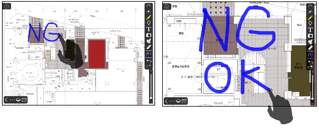 同じ太さで書いた場合に、図面拡大時、縮小時のどちらでも同じ太さの手書きメモになるようにしました。