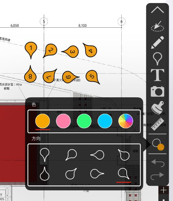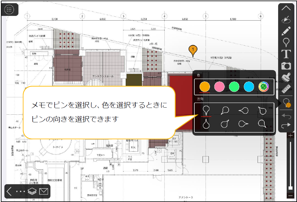 ピンの表示方向が8方向から選択できます。地図オプション上のピンも同様に選択が可能です。