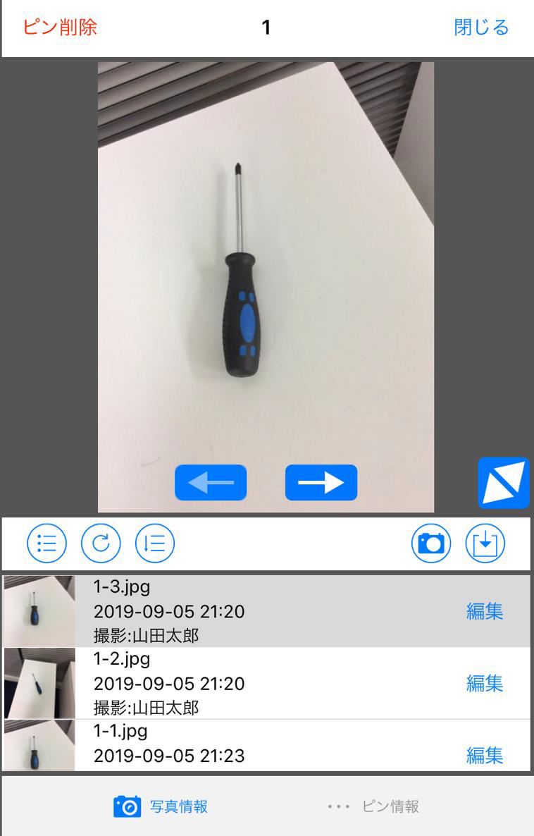 右上のインポートボタンをタップすると測定データが測定ポイントにインポートされます。