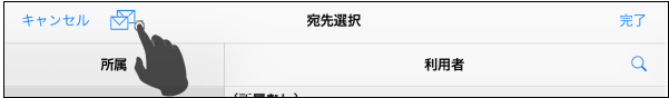 宛先選択画面左上のメーリングリストアイコンをタップします。
