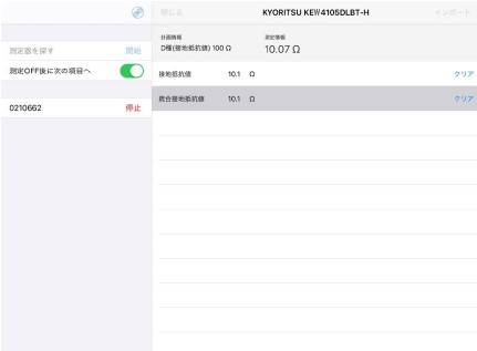 4.接地(弱)帳票の測定器連携機能を追加しました(iOS)
