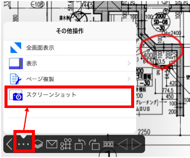 スクリーンショット機能は、「ファイル閲覧画面」の[ページ操作ツールバー]の[・・・]からご利用できます。