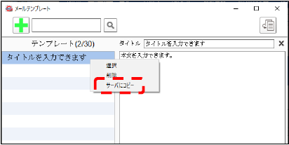 ローカルのテンプレートをサーバに共有する場合は、右クリックから「サーバにコピー」を選択します。