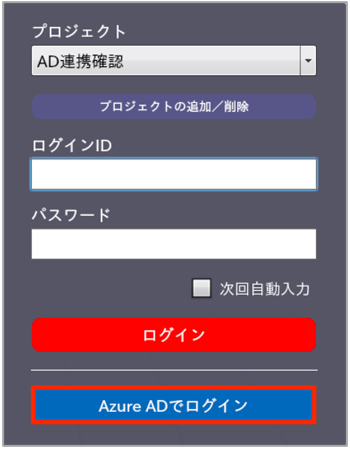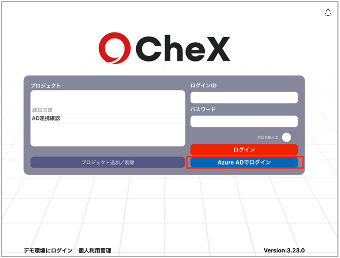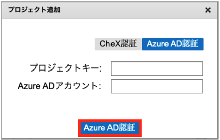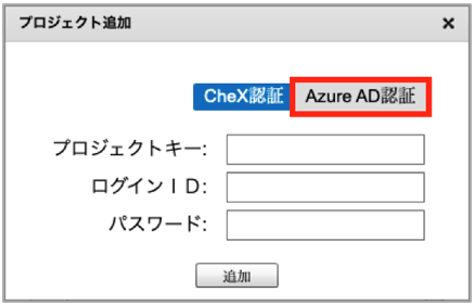 ※AADでプロジェクト追加およびログインする際は、対象プロジェクトにAADアカウントと一致するCheXアカウントが必要となります。