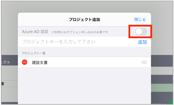 プロジェクト追加画面を開き、Azure AD 認証をONにします。