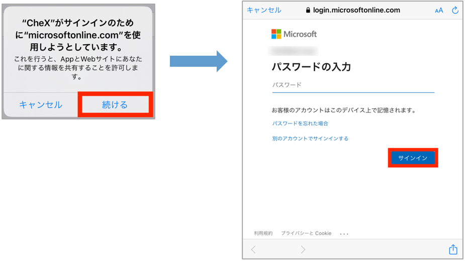 AAD多要素認証とはAADアカウントと一致するCheXアカウントでログインできる機能です。