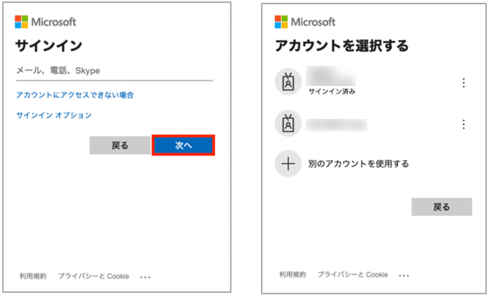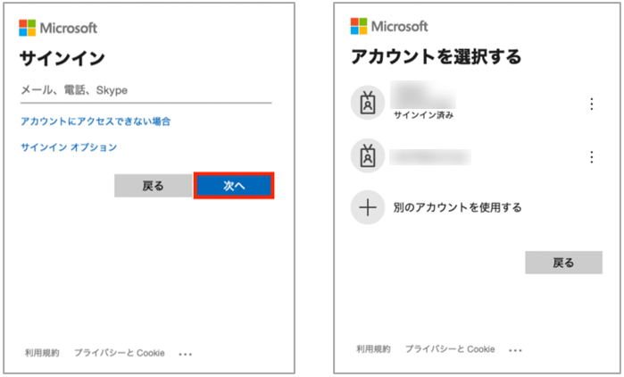 Azure ADアカウントIDを入力、または対象のアカウントを選択します。