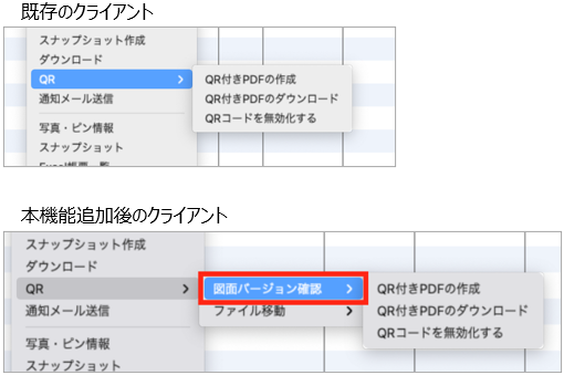図面が最新かどうかを判断する既存のQR機能は、以下の通りに「図面バージョン確認」を挟むようになります。