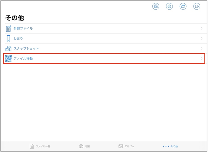 その他タブからファイル移動ボタンをタップします。