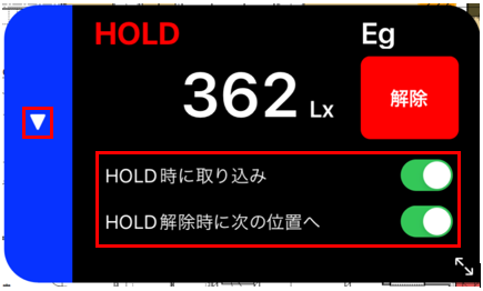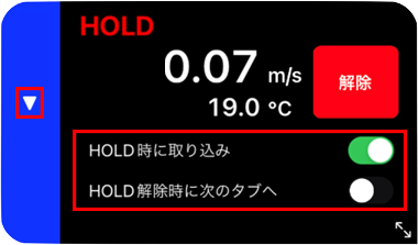 表示パネルにはHOLDボタンを搭載しており、タップすることでCheX側の操作だけで測定値の取り込みが可能になります。