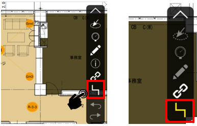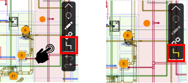 ルート検査アイコンをタップします。アイコンが黄色くなればルート検査モードです。