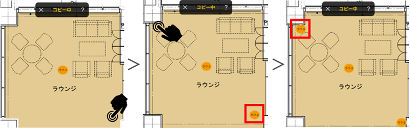連続コピーモードでは、図面上をタップするたびに測定ポイントを貼り付け可能です。