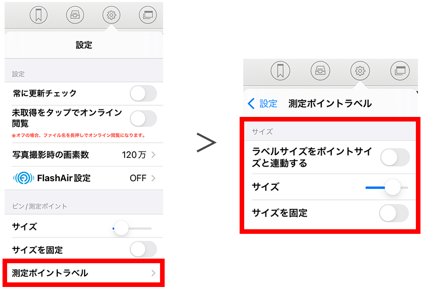 これにより、測定ポイントと測定ポイントラベルのサイズを、それぞれ分けて変更することが可能です。