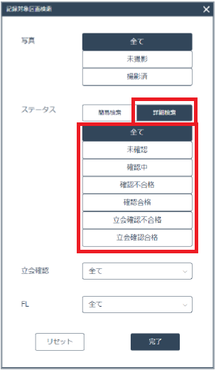 区画貫通処理記録(防火)シーンで、ステータスによる絞り込みに簡易検索が追加されました。