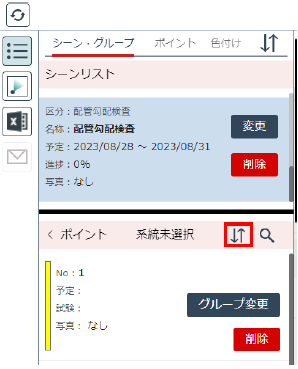 ポイント一覧上部にある並べ替えアイコンをクリック・タップすることで、連番振り直し用の画面が表示されます。
