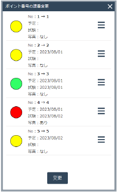 並び替え後、変更ボタンをクリック・タップすることで、ポイント番号が変更されます。