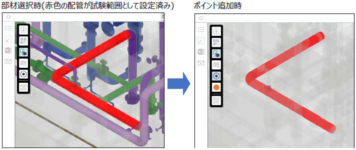 配管圧力検査シーンおよび配管排水検査シーンで、ポイントを追加する際に、試験範囲外の部材が自動でゴースト表示されるようになりました。