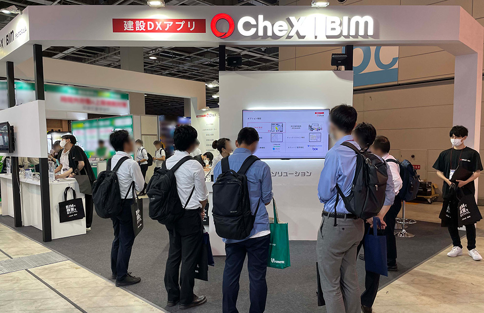 当社CheXブースでは、BIMの現場活用に関する情報交換を行いながら、