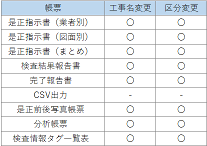 作成指示名・ファイル名 変更可能帳票⼀覧